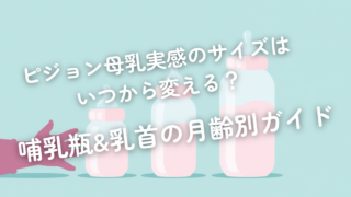 ピジョン母乳実感の哺乳瓶サイズ(80ml・160ml・240ml)と乳首サイズ(SS〜3L)をいつから変えるべきか月齢別に解説。サイズアップの見極めポイントやボトル素材の選び方まで、育児中ママの視点でまとめました