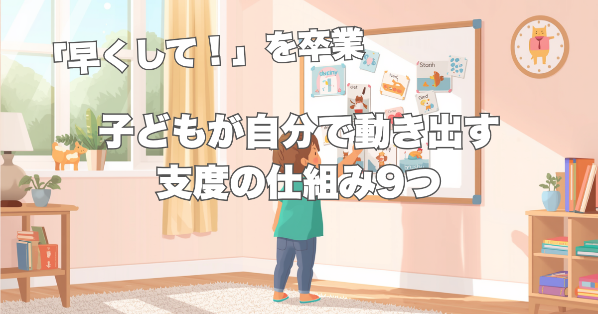 この記事で紹介した9つの仕組みも、全部がすべての家庭にフィットするわけではないです。「うちに合いそうなものだけ取り入れて、合わなかったらやめる」くらいの気持ちで試すのがいちばん長続きします。