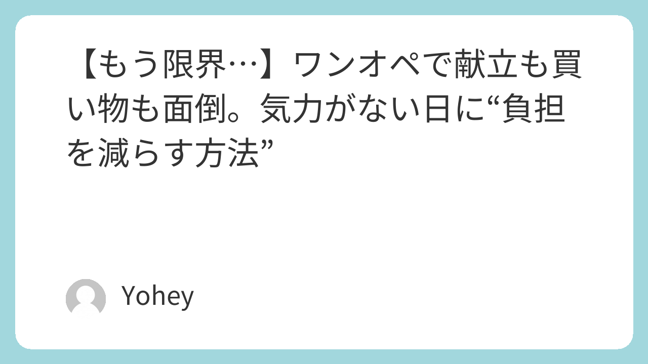 【ワンオペママへ】献立も買い物も面倒。気力がない日に“負担を減らす方法”