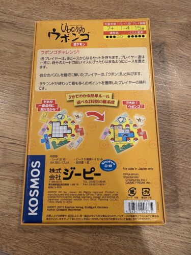 ウボンゴ ポケモン版は、カードに描かれたマスの形に合わせてパズルピースを並べ、ぴったりはめることを目指すゲームです。